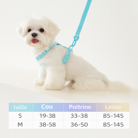 Certains harnais intègrent un rembourrage en néoprène pour protéger les aisselles et éviter toute irritation. Disponibles en plusieurs tailles (XS, S, M, L, XL), ils conviennent aussi bien aux petits chiens qu’aux races de grande taille, comme le berger allemand ou le labrador.
