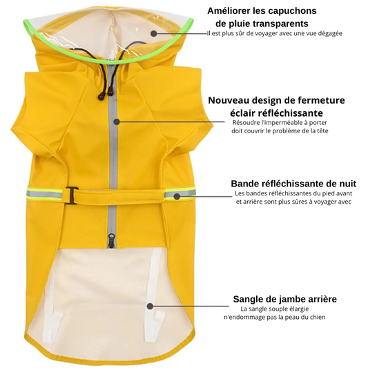Protégez votre chien avec un imperméable pour chien conçu pour résister aux intempéries tout en assurant un confort optimal. Fabriqué en polyester déperlant et doté d’une membrane respirante, ce manteau imperméable empêche l’humidité de pénétrer tout en évacuant la transpiration. Sa capuche amovible, ses élastiques de maintien et sa fermeture éclair robuste assurent une protection efficace contre la pluie et le vent. Adapté aux petits chiens comme aux grands chiens, cet imperméable léger est parfait pour affronter le mauvais temps lors des promenades.